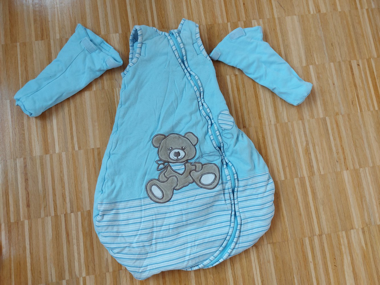 hellblauer dicker Baby-Winterschlafsack mit abnehmbaren Ärmeln, Gr. 74/80