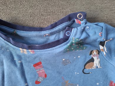Blauer Weihnachtspullover mit Hunden und Weihnachtsmotiven, Gr. 86/92