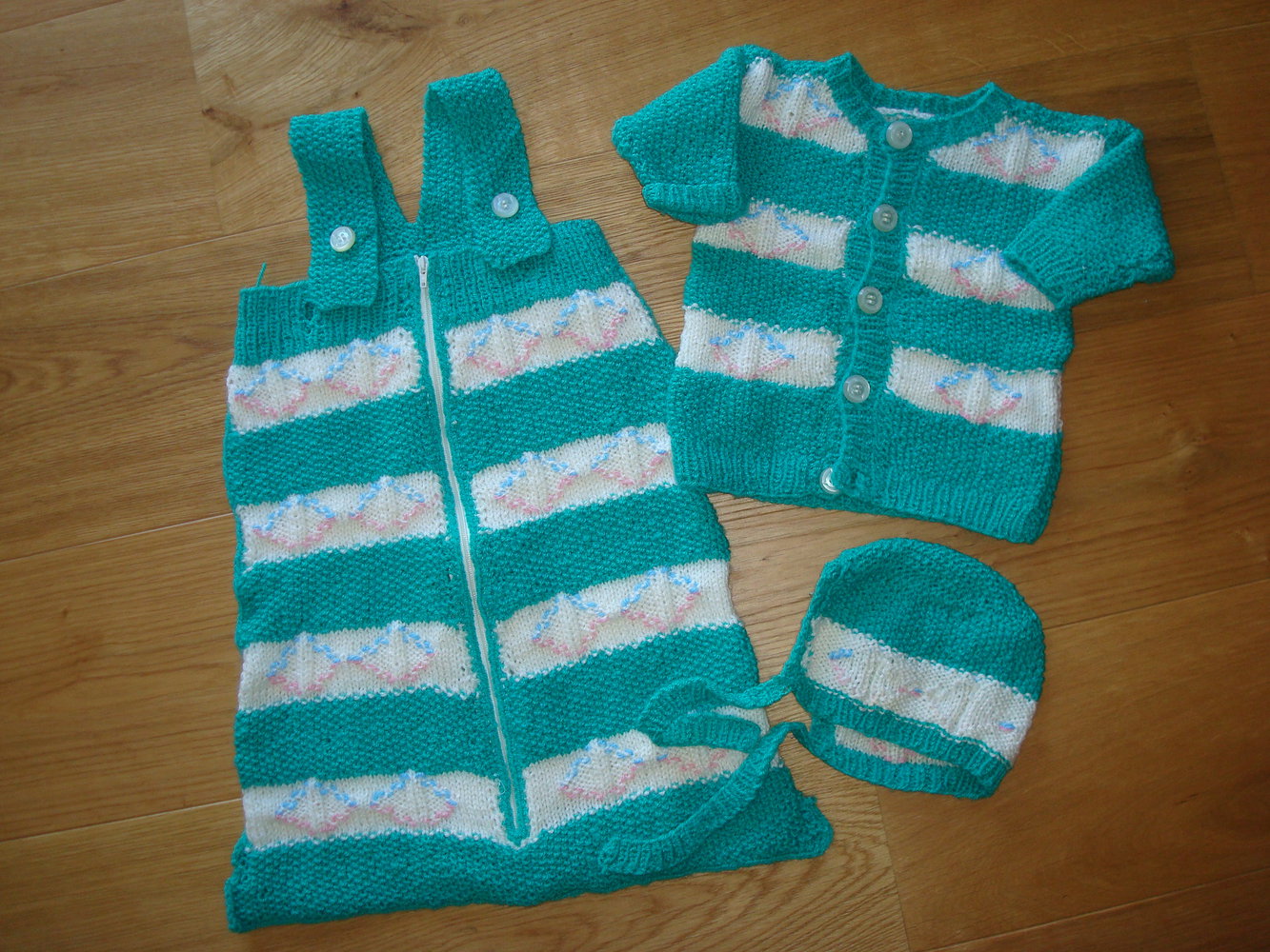ich verkaufe hier ein süßes Strickset in Grün für Neugeborene, handgestrickt.