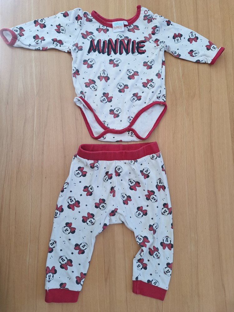 weiß-rotes Minnie Maus Set, bestehend aus Langarmbody und Hose 74/80