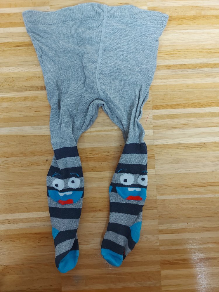 Graublaue Babystrumpfhose Gr. 62/68 mit kleinen Monstern.