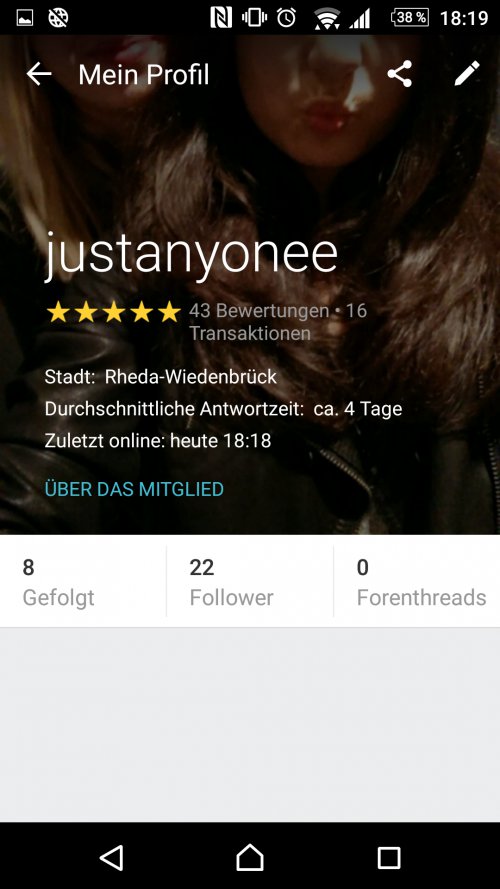 Justanyone Stadt : Hamm - Deutschland Letzte Aktivität : 17.06.2020 Mitglied seit : 10.09.2015 Besucher : 17611