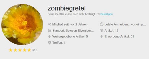 Zombiegretel Stadt : Neunkirchen - Deutschland Letzte Aktivität : 17.04.2017 Mitglied seit : 06.07.2016 Besucher : 16127