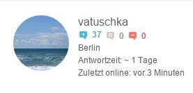 vatuschka Stadt : Berlin - Deutschland Letzte Aktivität : 02.11.2016 Mitglied seit : 24.10.2014 Besucher : 12505