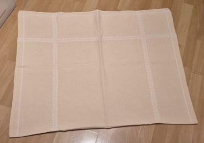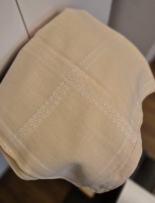 Tischdecke alt Stickerei vintage gelb weiß 92 x 150 cm