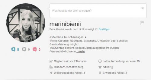 marinibieni Stadt : Aschaffenburg - Deutschland Letzte Aktivität : 18.08.2015 Mitglied seit : 06.11.2014 Besucher : 12268