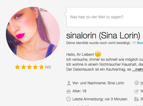Sinalorin Stadt : Hamburg - Deutschland Letzte Aktivität : 21.06.2015 Mitglied seit : 12.11.2014 Besucher : 7231