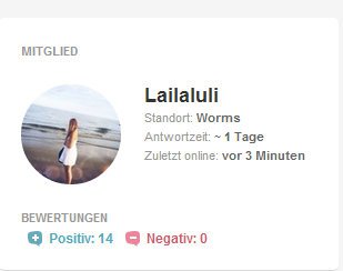 LailaBorg Stadt : Worms - Deutschland Letzte Aktivität : 01.01.2015 Mitglied seit : 13.11.2014 Besucher : 10391
