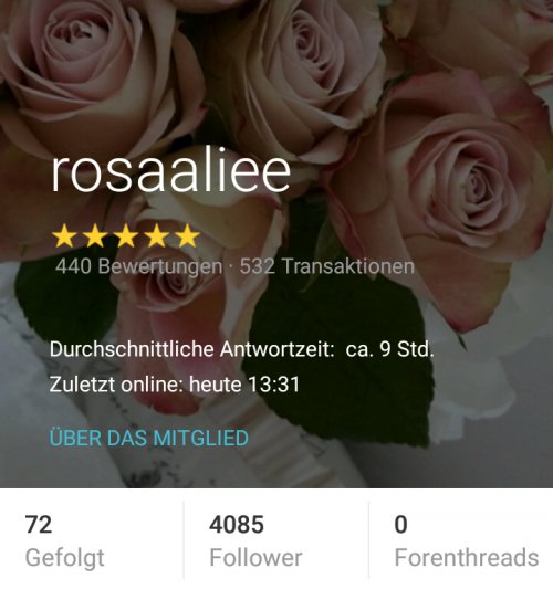 Rosaaliee Stadt : Berlin - Deutschland Letzte Aktivität : 20.11.2016 Mitglied seit : 24.11.2014 Besucher : 16441