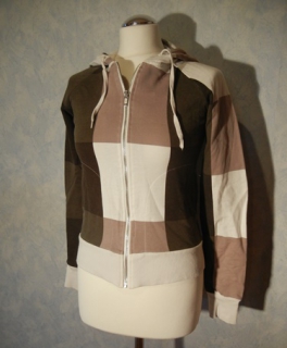 weiß-braun karrierte Kapuzen-Sweatjacke