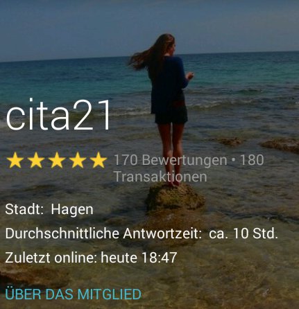 Ich bin von Kleiderkreisel hierher gewechselt, da ich für die paar Kleidungsstücke, die ich privat verkaufe keine Gebühren zahlen möchte. Wer die Möglichkeit hat dort zu schauen, ich bin vertrauenswürdig und hatte bei Kleiderkreisel bisher 163 positive Bewertungen gesammelt