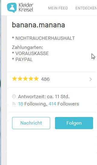 Ich bin nun nicht mehr auf Kleiderkreisel aktiv.